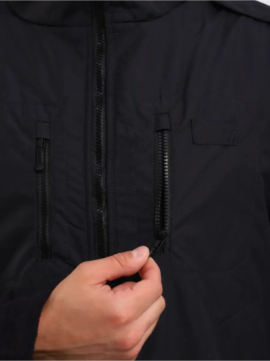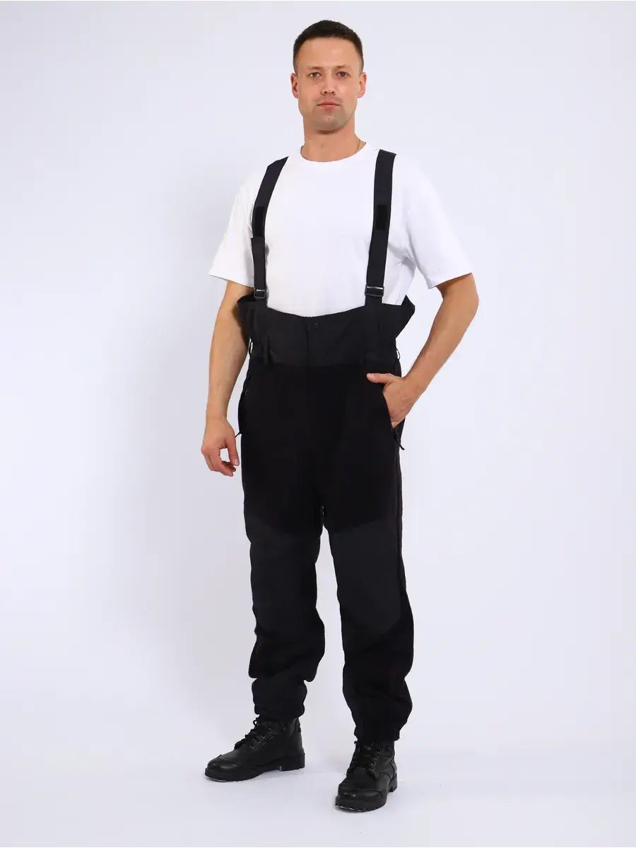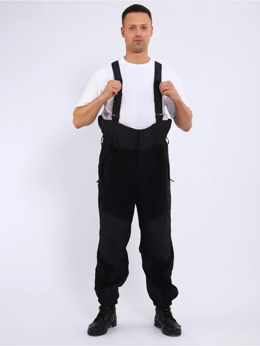 Костюм изготовлен из флиса с двухсторонним ворсом темно-синего цвета. Детали изготовлены из ткани плащевой полиэфирной с