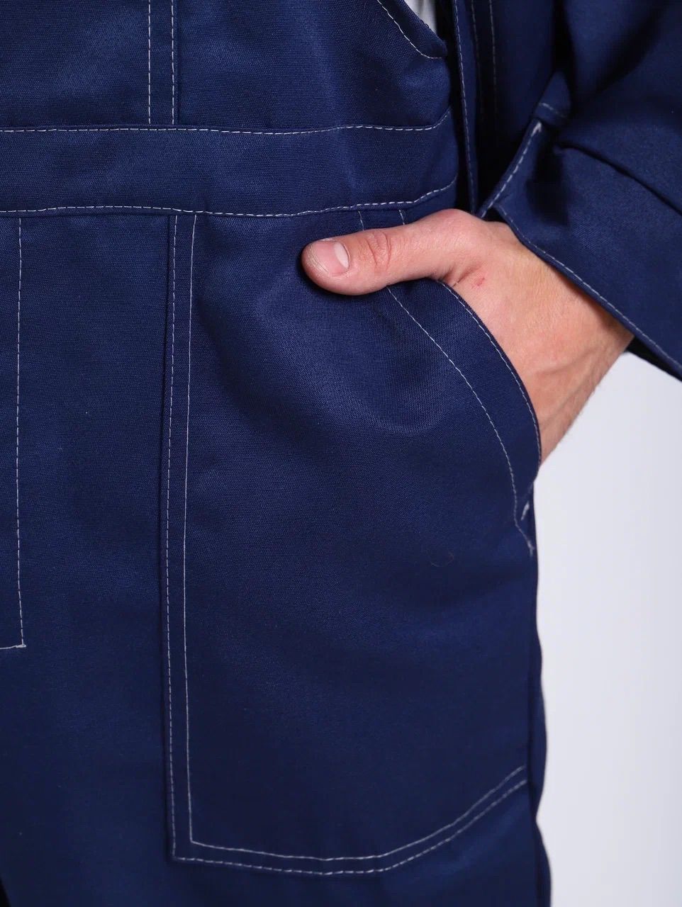 Удобный практичный полукомбинезон из смесовой ткани подходит как для работников производств, так и в личном хозяйстве. Удобные и глубокие боковые карманы с надежной двойной строчкой пригодятся для мелких предметов. Нагрудный карман с клапаном позволит дополнительно положить телефон и другие крупные предметы.